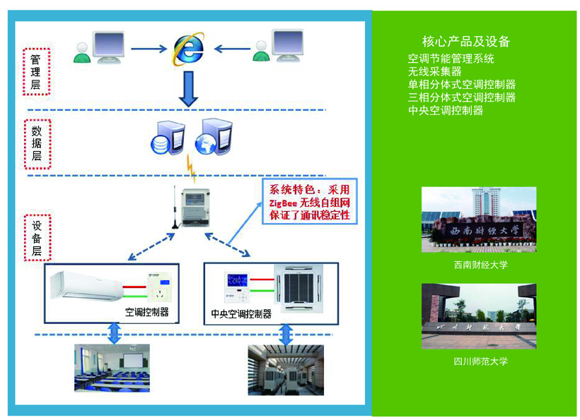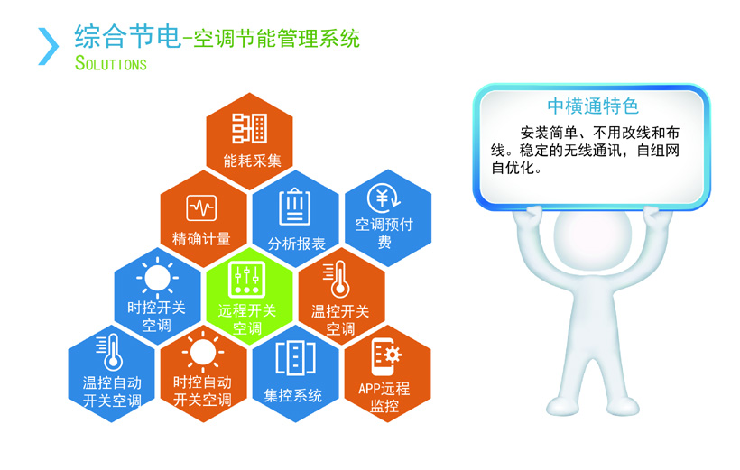空調(diào)用電智能控制系統(tǒng)是針對空調(diào)集中管理、集中收費、溫度控制及安全用電等方面需求研發(fā)的空調(diào)節(jié)能管控平臺。平臺支持空調(diào)用戶預(yù)付費、自助繳費等計量計費功能,以及安全使用監(jiān)測、遠程控制、能耗統(tǒng)計分析、溫度管理等監(jiān)控管理功能。成為客戶空調(diào)管理工作的利器。